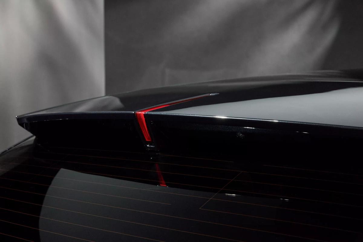 侧后方向看芒果配资,马自达CX-6e有着特别的D柱与后风挡,前者与车窗、车顶产生了类似无框的连接效果,并通过特殊的沟壑状分层来优化空气动力学效果;而后者不仅带有镜面处置,还提供了带赛车式高位刹车灯的扁平扰流板。再搭配上很“马自达”的尾灯、带切面效果的尾门,还有高光烤漆保险杠,马自达CX-6e给出的运动表达依然到位。