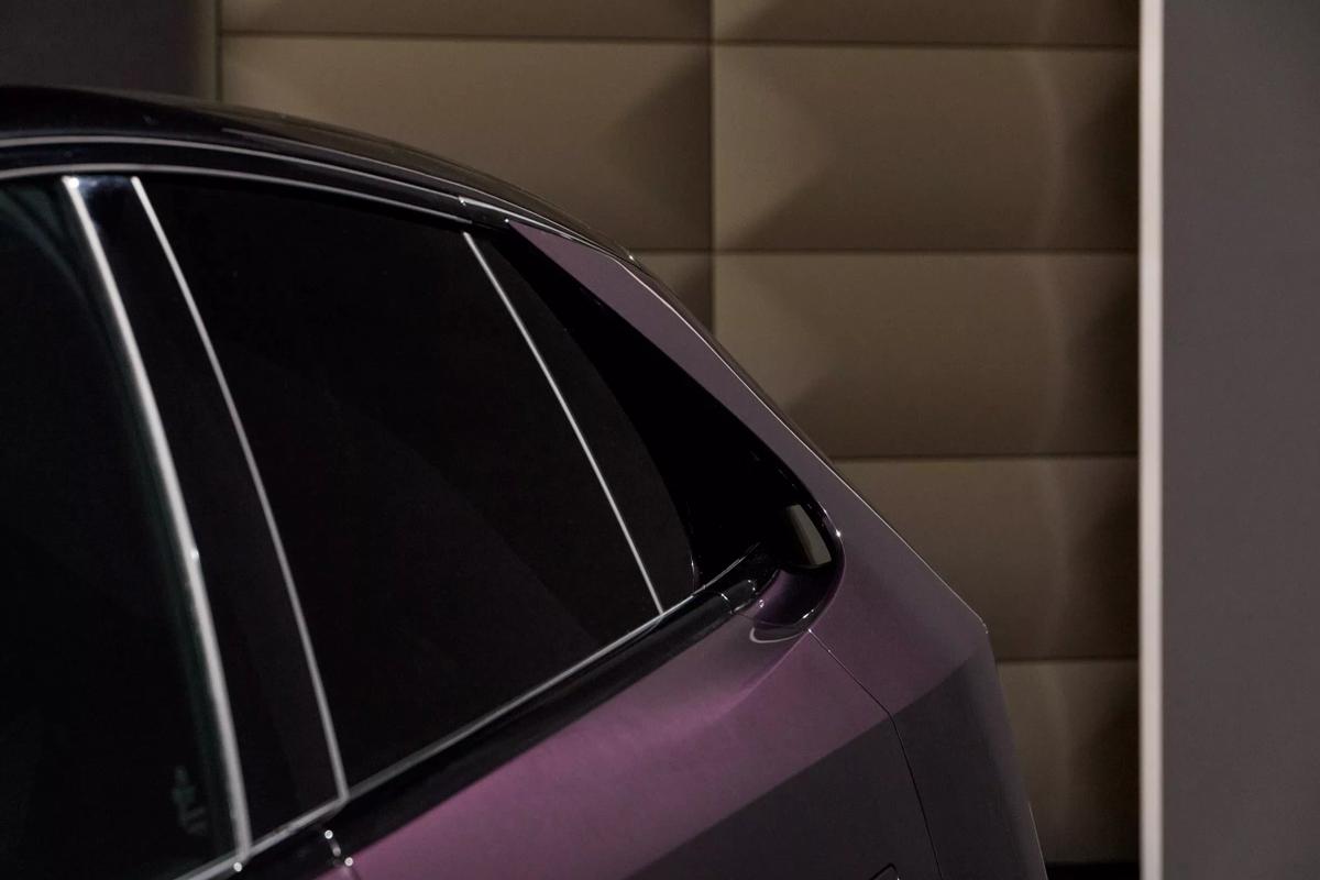 再从侧身来看,马自达CX-6e是把前脸中的烤漆装饰延续到了这里,不单单是可选装为摄像头的流媒体后视镜,它的车顶、车身支柱、侧裙以及轮眉等等全都是这样的处置。尤其是在展厅的打光照射下,车身的光影效果会更加丰富。