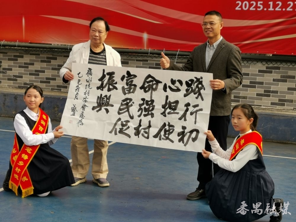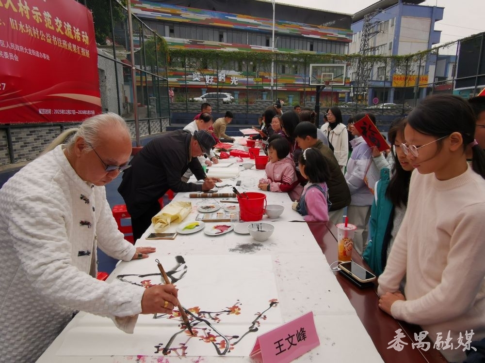 活动现场举行作品捐赠仪式,对公益书法班中涌现出的优秀学员进行表彰。旧水坑村被授予“‘百千万工程’文化入村示范点” 牌匾,标志着“旧水坑样本”进入全域推广新阶段。