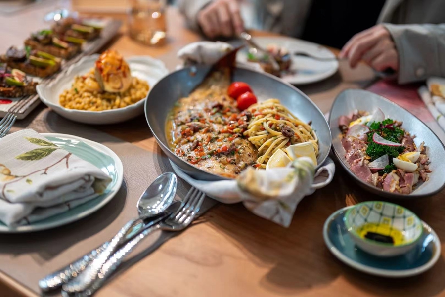 记者获悉,餐厅以100元-150元的人均客单价打入白领美食消费赛道,聚焦于商务消费和家庭用餐客群,打造高楼大厦中的“意大利食堂”。李子春介绍,为了迎接“上海环球美食汇”,Fiamo推出了4人特色套餐,以家庭欢聚为特色,总价1048元,汇集了西班牙、土耳其、法国、黎巴嫩等多地的餐品和香料,既涵盖了适合中国胃的“蟹粉麦仁饭”,又还原了地中海风味的“意式风味鸭胸薄片”。